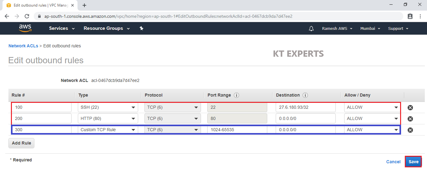 Select Public Network ACL “Network ACL – Public” and go to outbound Rules then click on Edit outbound rules.