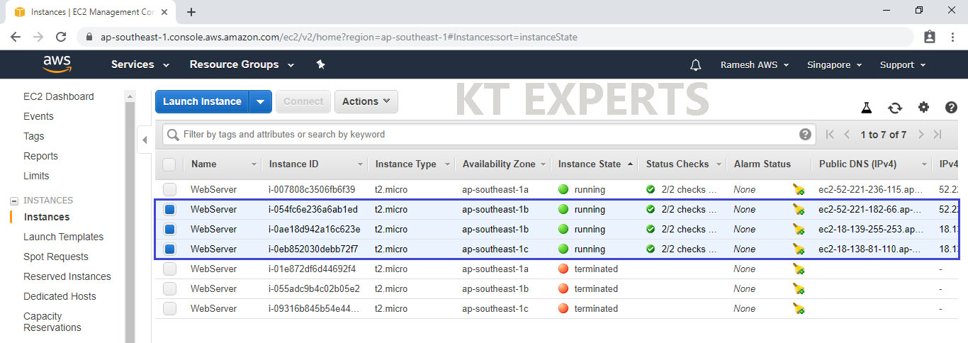 The 4 webservers running and remaining servers are in terminated state, auto scaling it self decides the availability zones we don’t have any control of that.