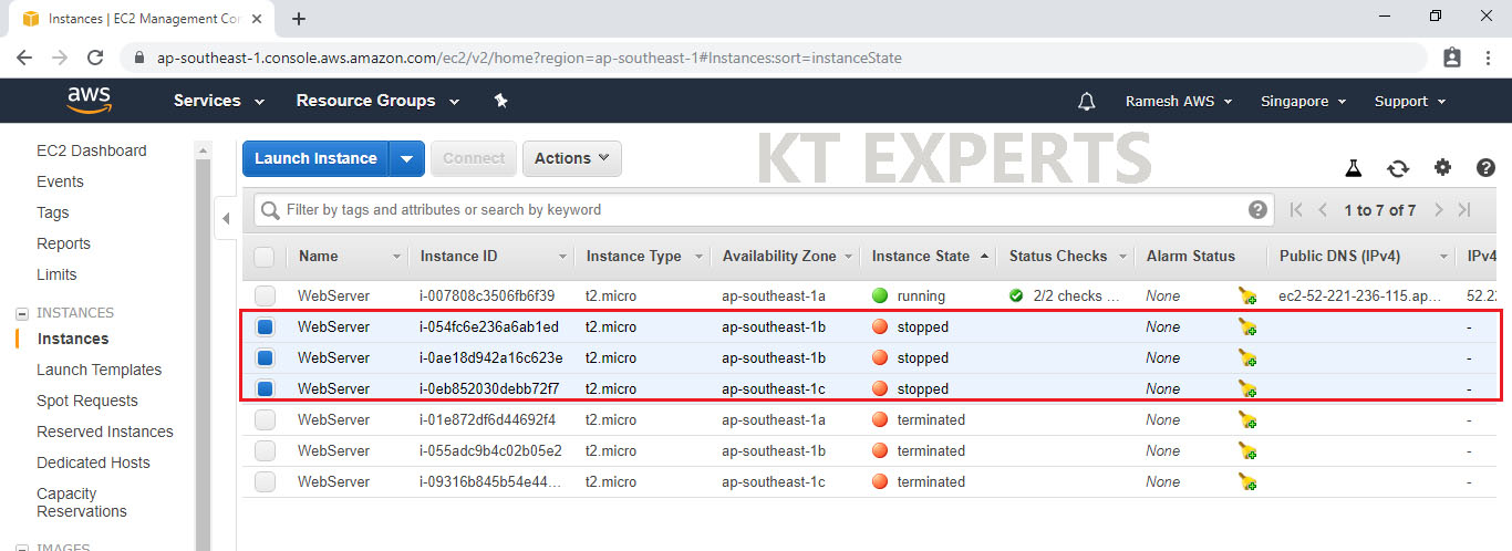 Here we can see the stopped webserver is in ap-southeast-1c that to be terminated.
