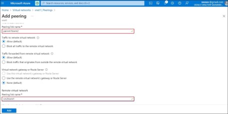 In the Remote virtual network Peering link name give the name as vm2 to vm1 as we are communicating from virtual machines vm1 to vm2 or vm2 to vm1.