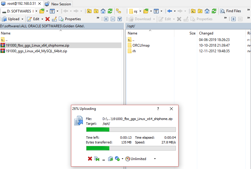 Now copy GoldenGate software into /opt